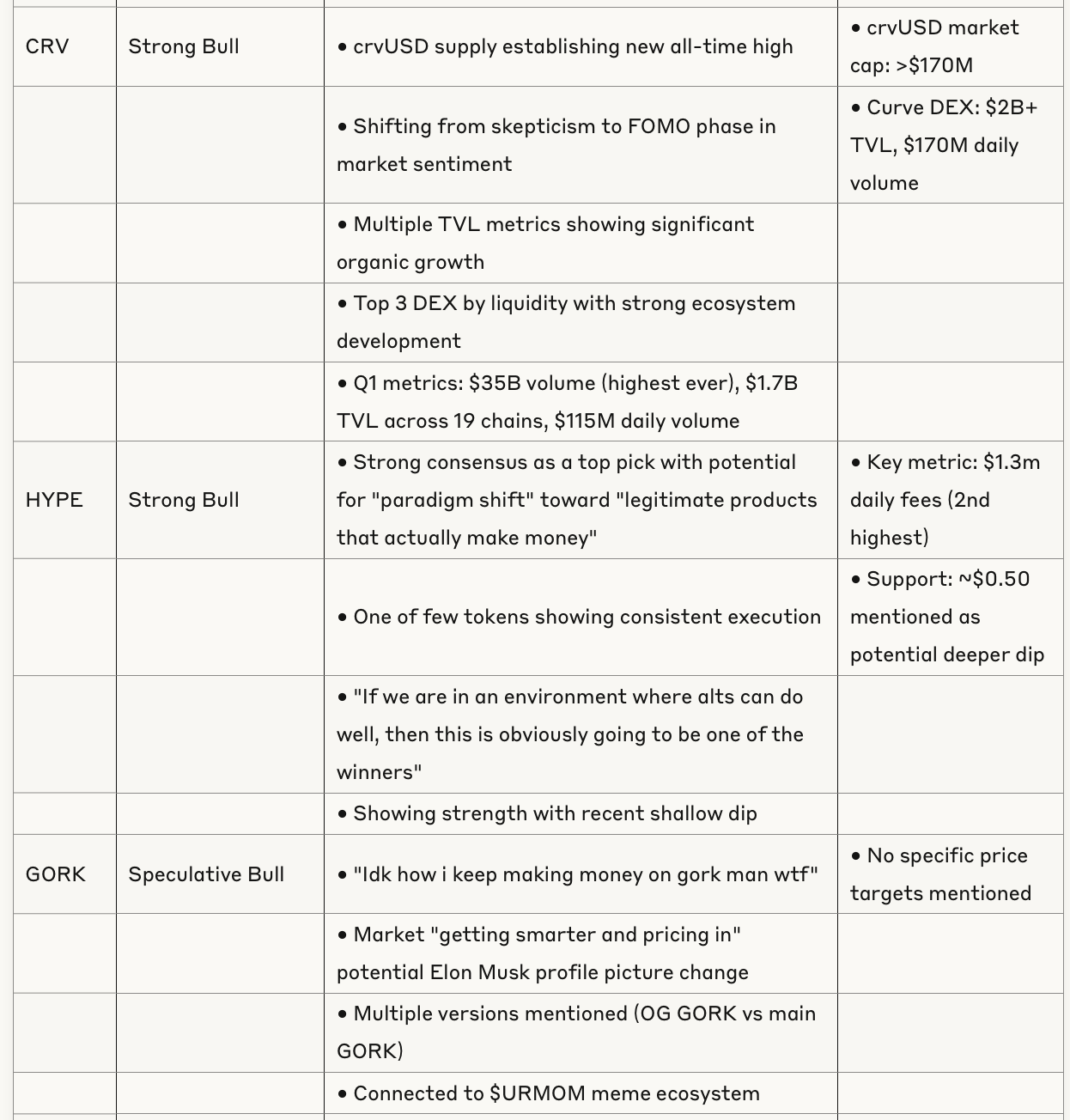 Narrative shifts bringing previously ignored tokens like CRV into FOMO phase as fundamentals improve.
