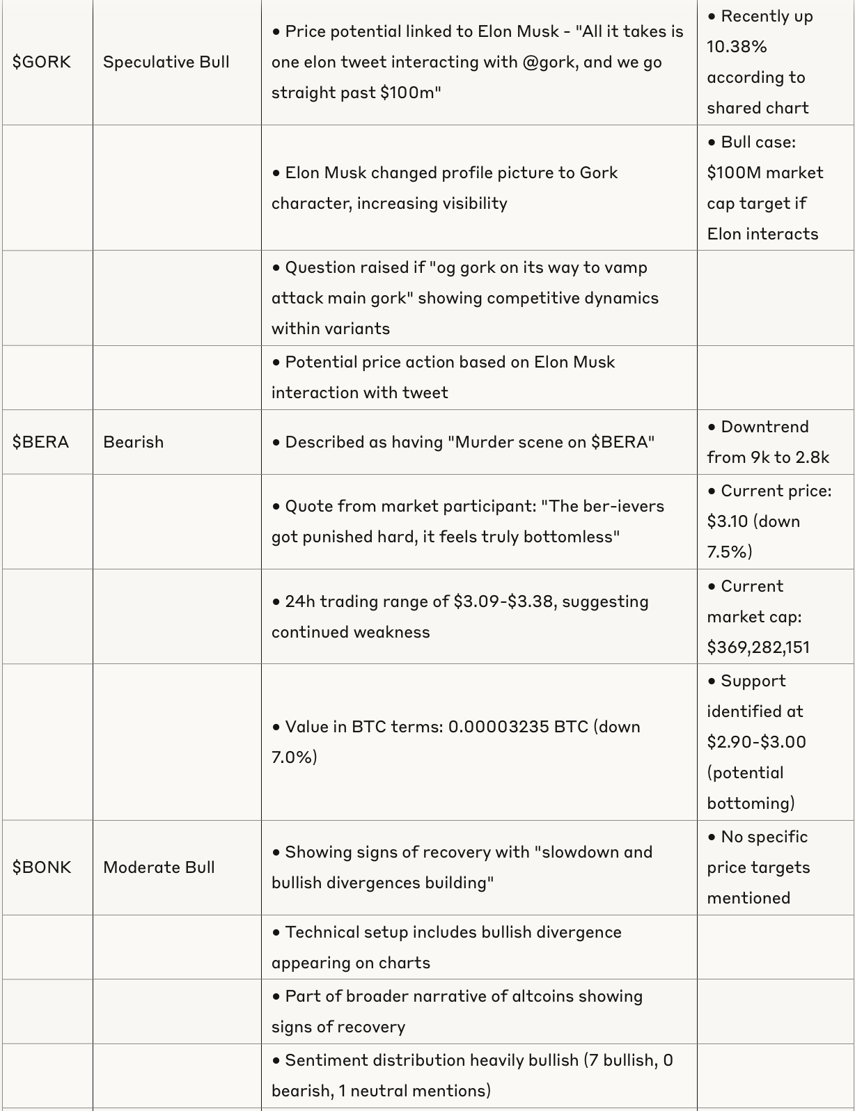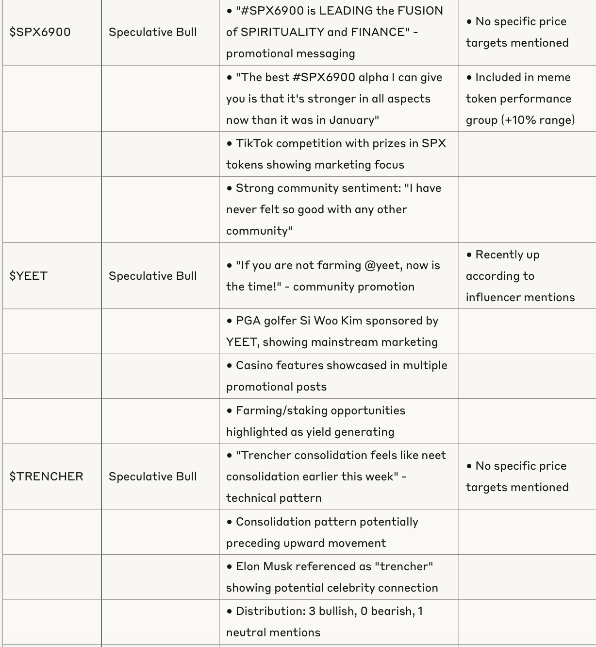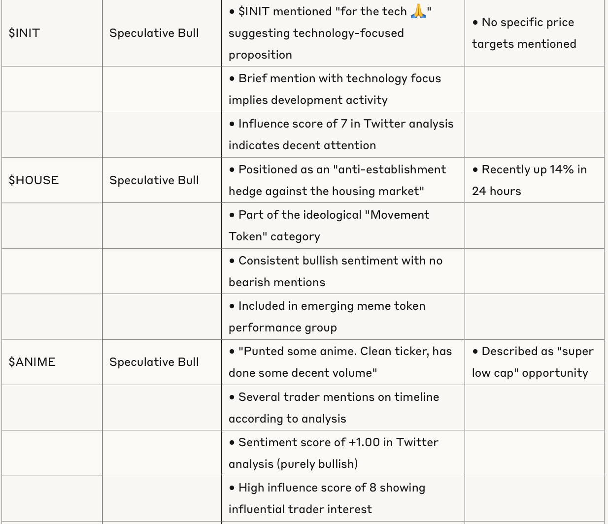 Token Analysis Table
