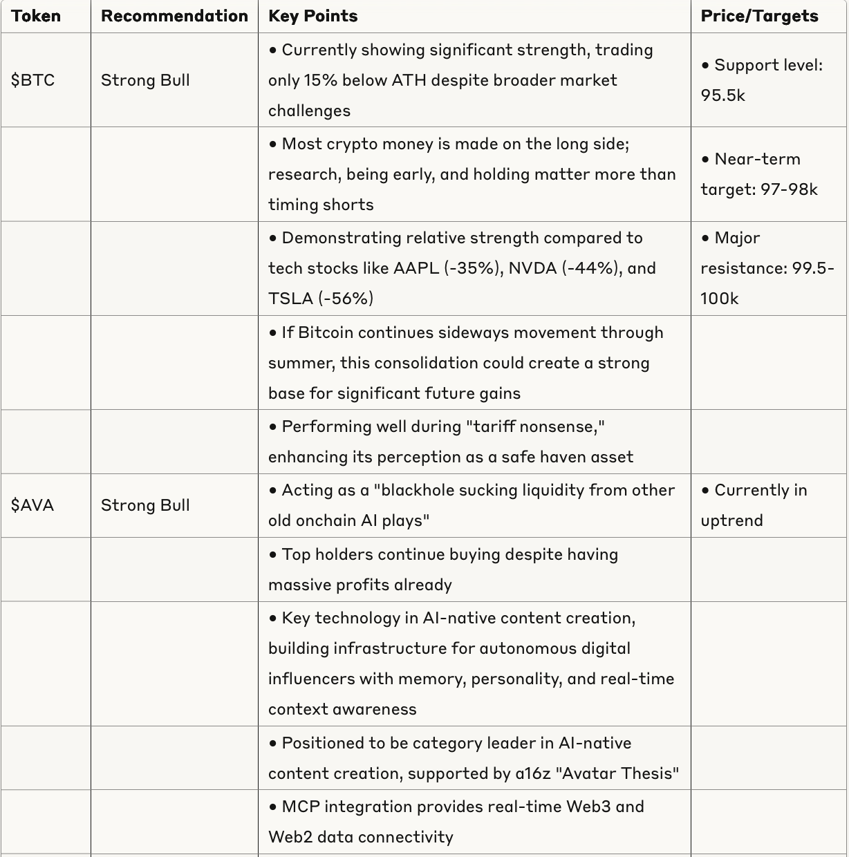 The AI content creation ecosystem is emerging as a significant narrative, with $AVA (Hologram Labs) positioned as building infrastructure for a new era of AI-native digital influencers with full context awareness via MCP integration. This technology enables autonomous agents with memory, personality, and real-time context awareness, with positioning as a category leader supported by a16z's "Avatar Thesis."