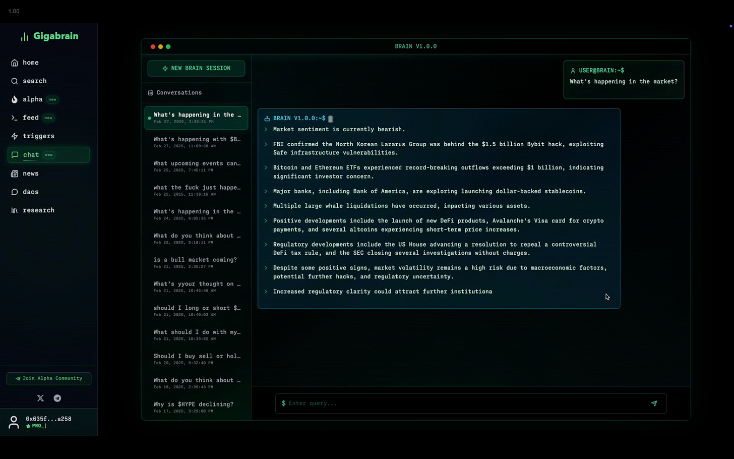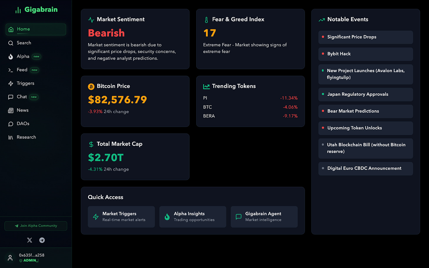 Gigabrain combines AI-powered market intelligence with a comprehensive trading terminal and automated fund management