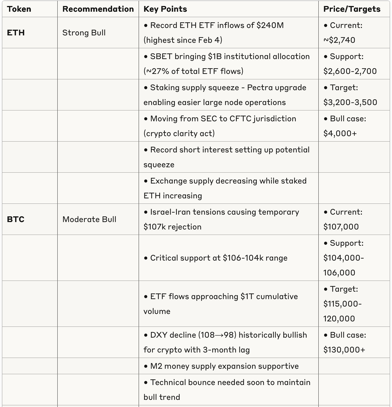 The crypto market is experiencing a sophisticated institutional rotation with record ETF flows driving supply-demand imbalances, particularly in ETH. While geopolitical tensions create short-term volatility, the underlying trends of staking regulation, creator economy monetization, and DEX infrastructure development remain strongly bullish through July 2025.
