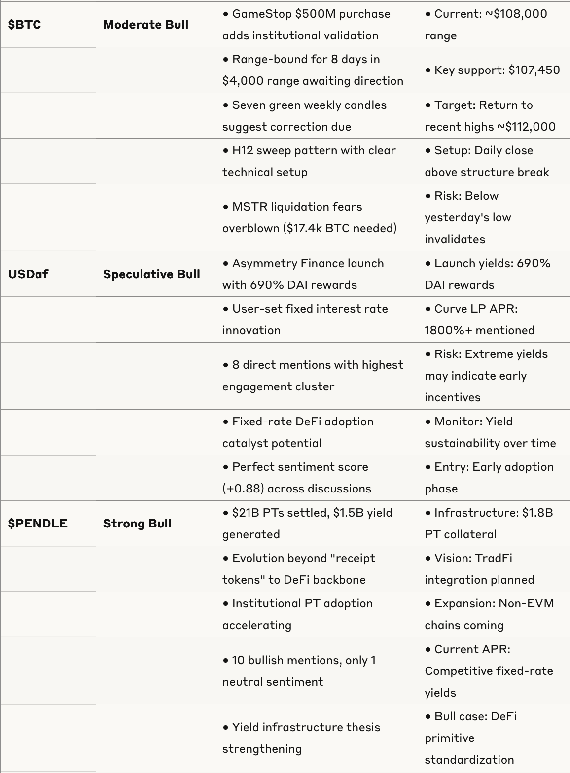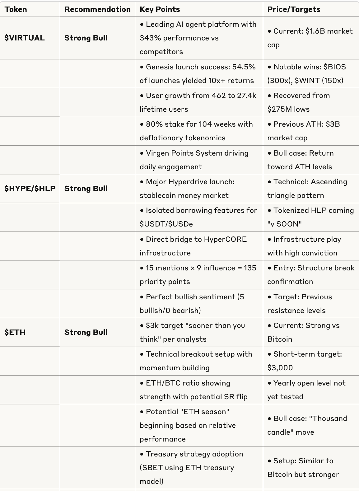 Bottom Line: Focus on proven platforms ($VIRTUAL, $PENDLE), infrastructure expansion ($HYPE, $ETH), and sustainable yield mechanisms while avoiding overleveraged positions and unsustainable yield chasing.